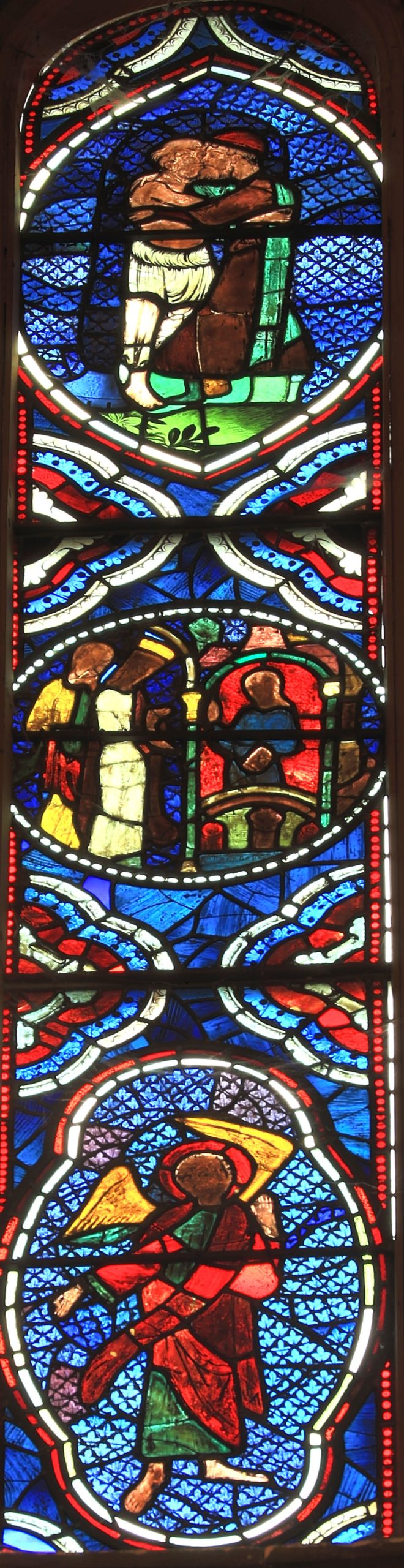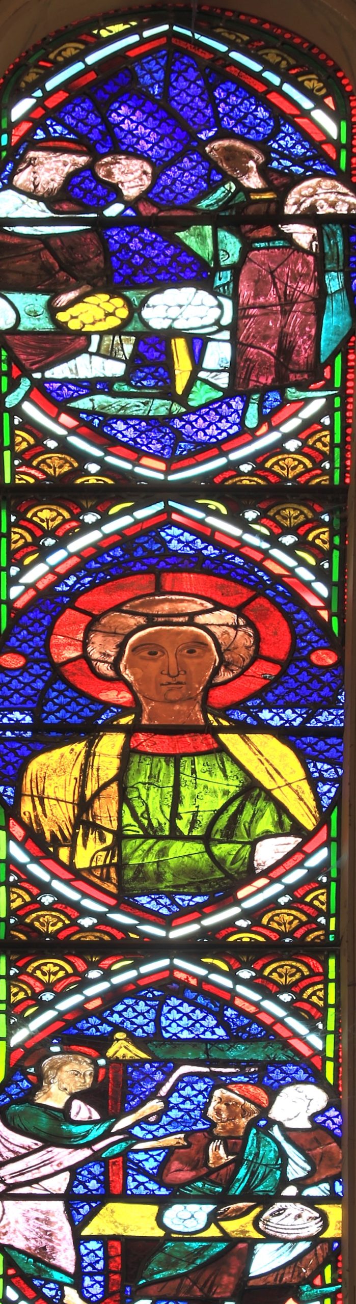 From the Life of Christ window, Rouen Cathedral nave c.1230 The head of Christ is a replacement.